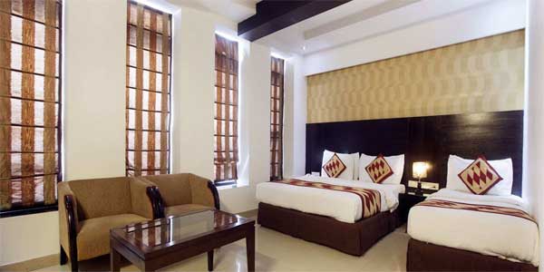 Is a 3 star New Delhi hotel. It is a few minutes walk from the New Delhi Railway Station. It offers modern family rooms that can sleep a family of 4. There is a seating area, flat screen TVs and some rooms have private balconies.